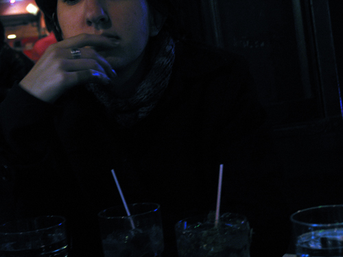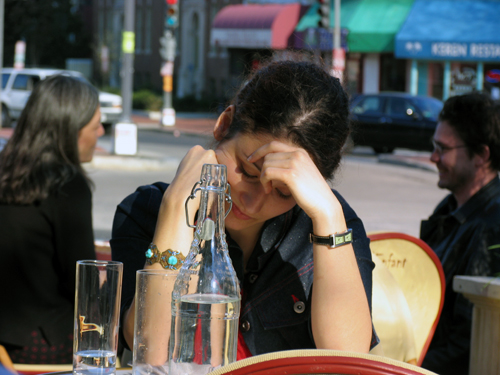 After class, Amy, Kyra and I went out for some eats. And like any good yogi does after working out, I ordered a Yeungling. This is where my night began. Mind you, it was only 3 p.m. After we ate, Kyra headed home and Amy and proceeded on through Adam’s morgan. We ended up at L’Enfant. This is a picture Amy took of a girl at the cafe. She was reading the menu.