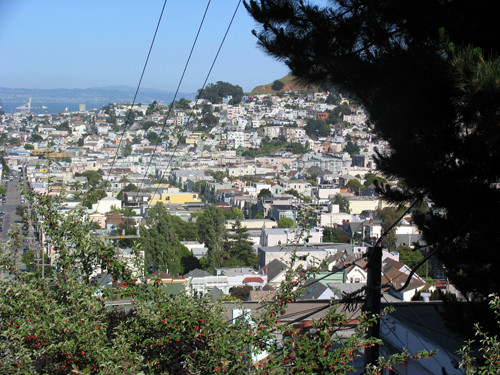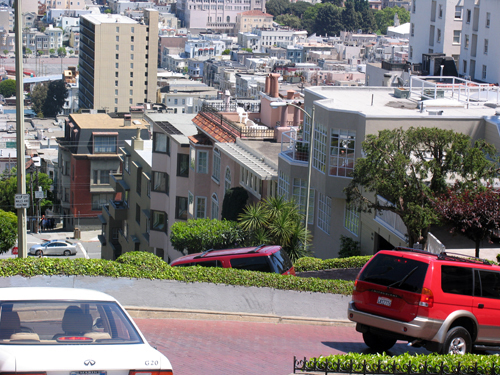 Somehow, while we were looking for apartments we ended up at Lombard Street and didn’t realize it until we saw a band of tourists taking pictures. I figured they were there for the view of bay. But once we walked up to it, we discovered the famous, windy street. I think I’d hate to live there.