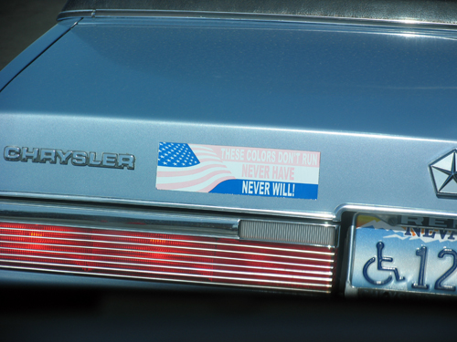 Found this bumper sticker pretty funny. The colors might not run, but they will fade. heh.