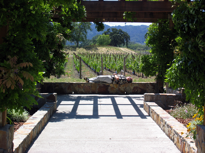 Here is some guy taking a dirtnap. I hear this happens often. After a few glasses of wine, everyone wants to take a nap. And what a perfect place to do so.