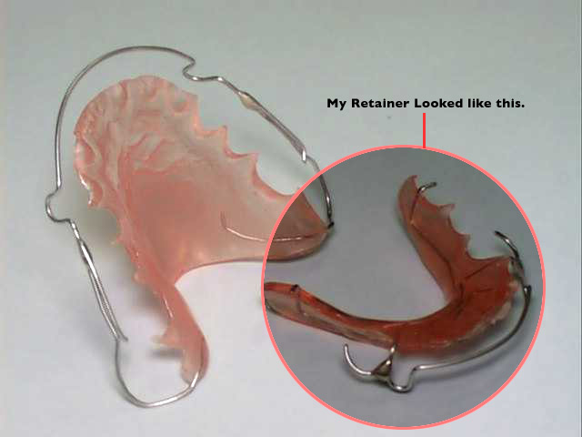So you can imagine, after this wordy definition of a horribly unattractive overbite, how upset I was when I realized that one of the retainers I wear to keep everything at bay went missing during our move. Below, is a picture of what it looked like. (Please click on the image to enlarge).
