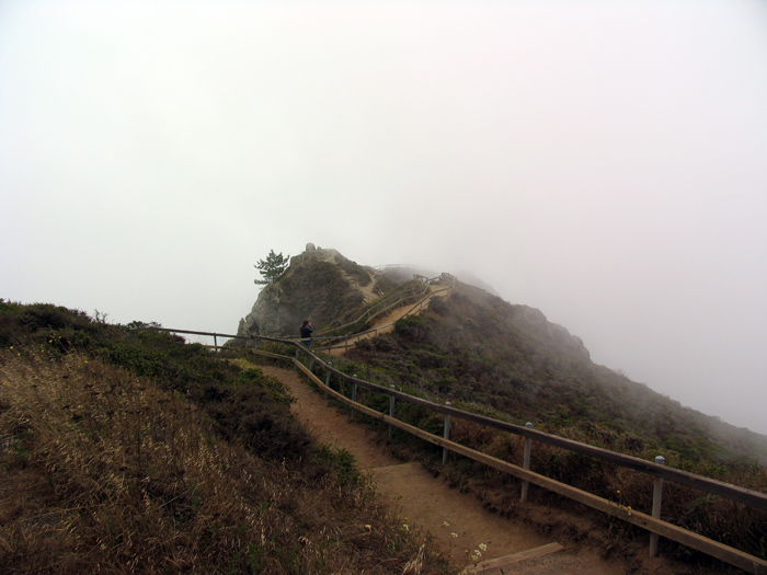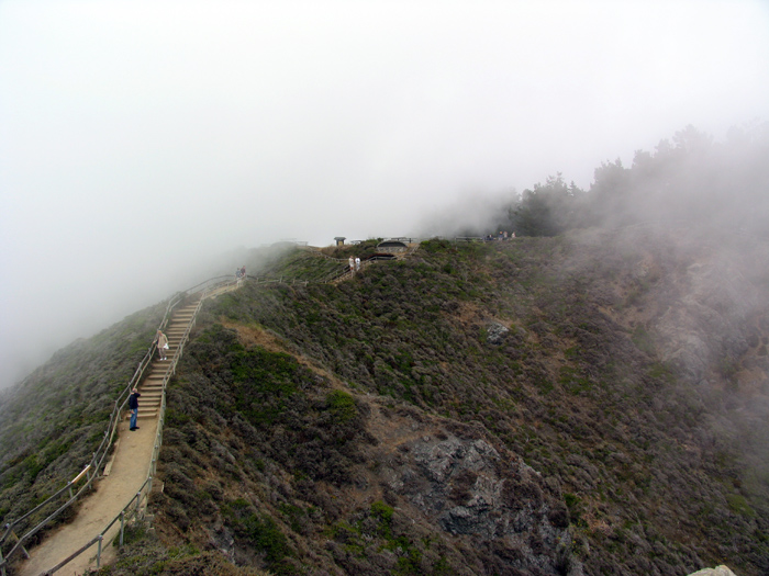 This is the end of the walkway. Occasionally, through the the fog we could see the waves below, crashing up against the shore. The drop here was hundreds of feet. I’m still finding it hard to believe that if one drives 10 miles out of San Francisco, this is what they’ll see.