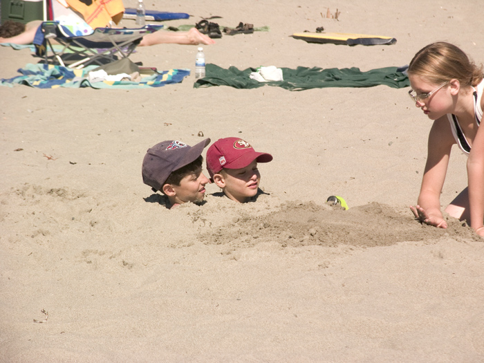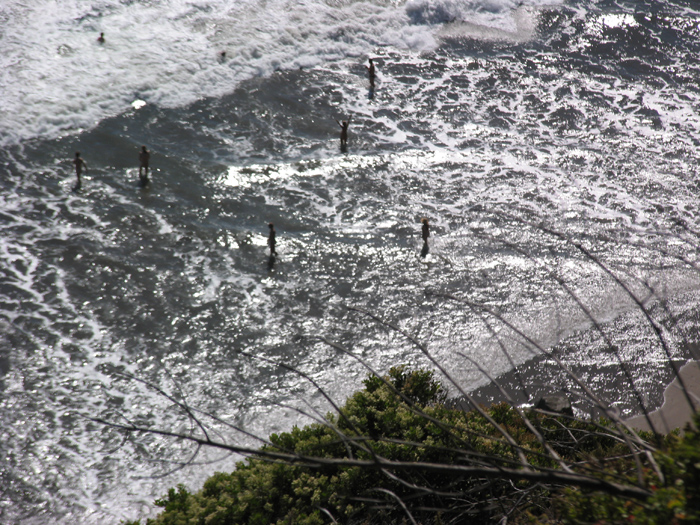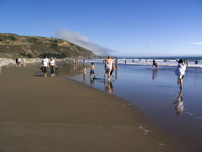 Just a few miles north of Muir Overlook, there is sunshine. The fog clears and people are swimming along the coast, sunbathing and surfing.