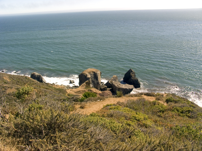 Two of the places you will see photographed here are the Muir Beach Overlook and Stinson Beach. I also took a few pictures of the drive between the two. That’s the drive I referred to above. That’s the drive amazing and scary enough to make any slightly tourettic person consider the possibility of one spasmatic jerk to the left or a bee sting on high. What if? Sweet Jesus, what if?