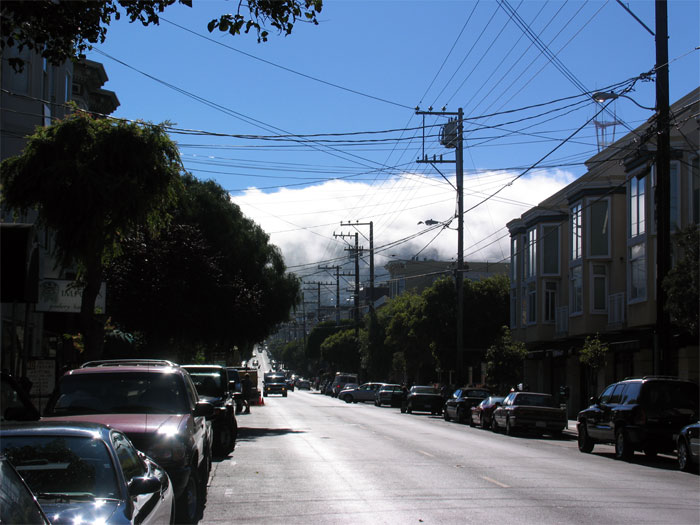 On Saturday, while wandering through Noe Valley with Toby, I tried to take a picture of how weird it really is especially given the angle as to how we often see it, spewing in overtop our town, coming in as if it’s telling us to Go. To. Bed. Now. I’d like to take this moment, before I babble on and on about the number of movies we watched this weekend (again), to somewhat miserably try and capture just how weird this fog really is. I mean, it’s REALLY weird. I could live here a million years and still probably never get used to its weirdness. And for those few folks who are actually FROM here and who may have never seen life through unfogged eyes, I’m here to tell you that Weather? She ain’t normally like this. She ain’t totally mystifying (in more ways than what’s obvious) she ain’t this predictable yet at the same time so unbelievably mind-boggling and spooky.