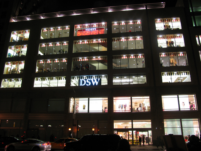This wasn’t here when I moved away back in 2002. I think it was still some really old, crappy drug store. It’s rather alarming. Very bright. Filene’s Basement is hardly a basement.