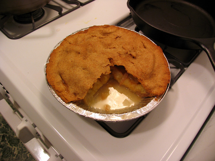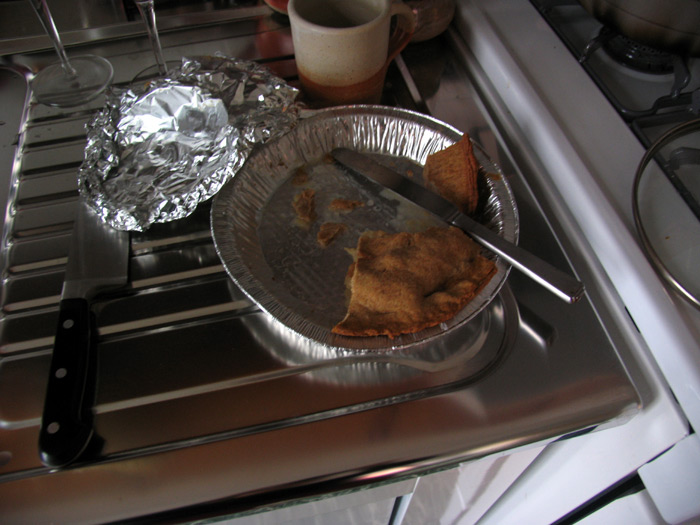 The peach pie is the best one yet. We nearly consumed the entire thing in one sitting. Toby is inhaling it.