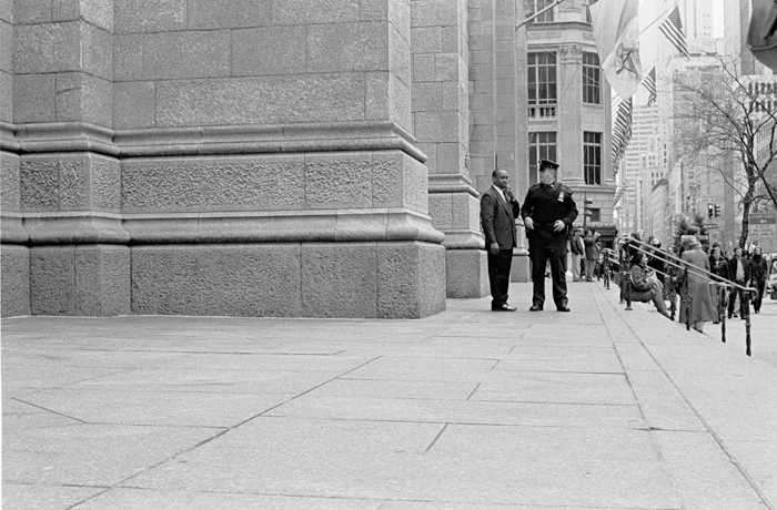 A conversation between one of the police officers and an usher. This is when I found out that someone during the 1:30 mass at Saint Patricks had made the announcement that the Pope had already died. That’s why there was an urgency to get everyone up there. The cop was not pleased by this as everyone on the squad (on call, etc) was called into work. Errors like this can prove to be really expensive for the city.
