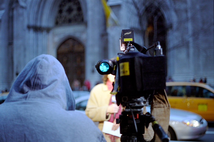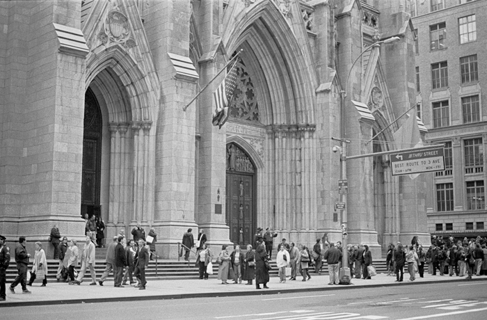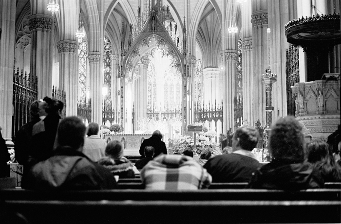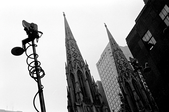 On Friday, a little after 1:30 p.m. word got out that Pope John Paul II had died. I turned on the news when I realized that many of the major t.v. stations were reporting live from Saint Patricks Cathedral on 54th street in Manhattan. Why bother watching them on TV when they’re directly across the river from me? So I packed up my camera, put on my coat and headed to midtown to join them. After all, this was history in the making and certain things could wait till today to finish.