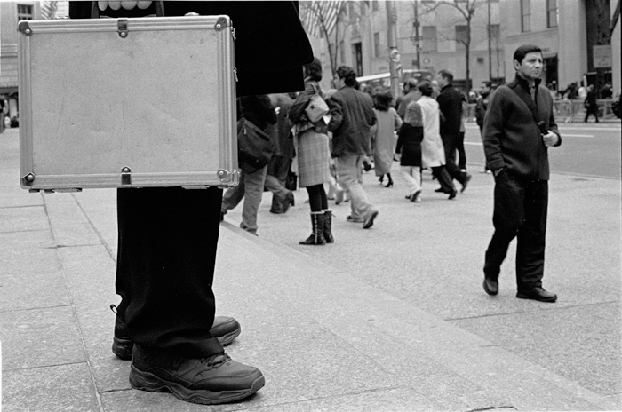 This guy stood outside holding this metal briefcase for nearly an hour. I finally left and he was still there.