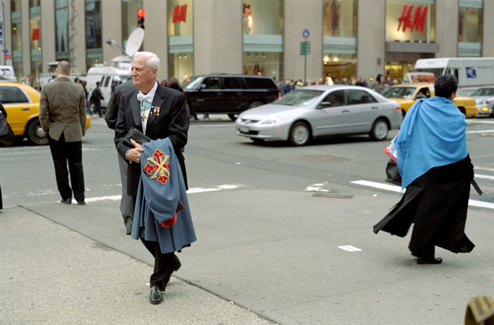 A pacing priest. (Correction: A Knights of Columbus member? Thanks, bryan!)