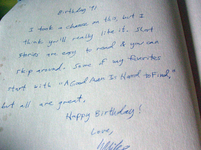 On my 17th birthday, my boyfriend at the time gave me a book. He was 6 years older than me and really liked that fact. I think. He bought me The Complete Stories by Flannery O’Connor. I remember being really excited as no boy prior this had ever gotten me a book before especially one with actual words and well written sentences.