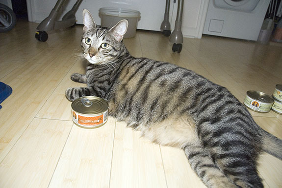This is entirely Toby Joe’s fault. He decided to pick up a few new varieties of Weruva. Usually, Murray and Tucker eat Paw Lickin’ Chicken, Grandma’s Chicken Soup, Mediterranean Harvest, and Polynesian BBQ. But this time, Toby Joe came home with On The Cat Wok.