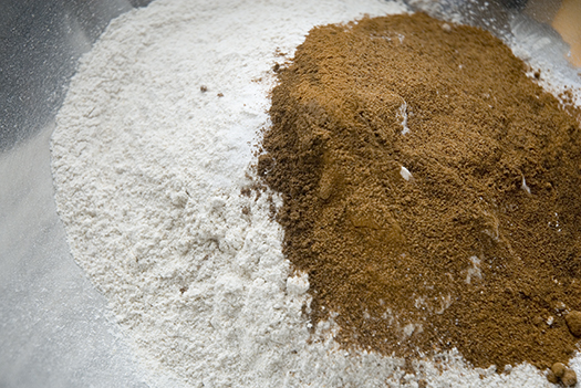 In another bowl combine flour, sugar, salt, baking powder, baking soda and spices.