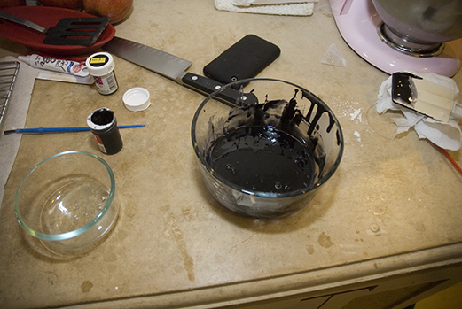 Also, you can give the kid something to do too! I have these baking pens. I gave Emory one of the skull and crossbones and let him go to town on it.