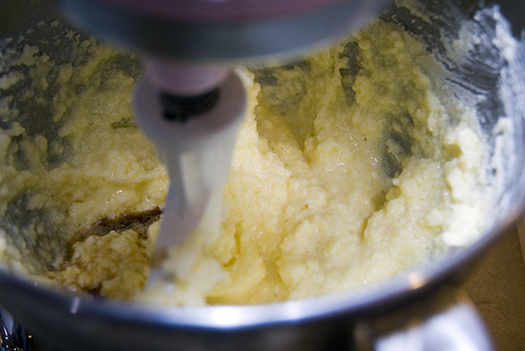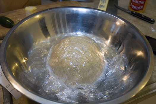 Add flour, baking powder and salt. Stir that up. The dough will become a bit unruly for the mixer. I used my hands at that point and formed it into a big ball. Cover it with saran wrap and refrigerator until chilled.