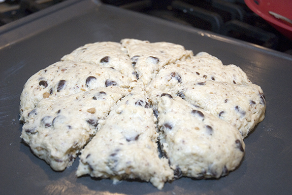Important! Since these scones are cooked together (like a pizza) the middle might need a little more work after the 20 minutes are up—while the inside is nice and crispy the inside might be a little too wet. If you insert a knife and you find this to be the case, simply remove the scones from the oven after they are finished. Turn off the oven! Pull them each apart with a knife and then put them back into the (cooling off) oven for another 5 – 10 minutes. If that doesn’t make sense, please let me know in the comments section and I will explain better.