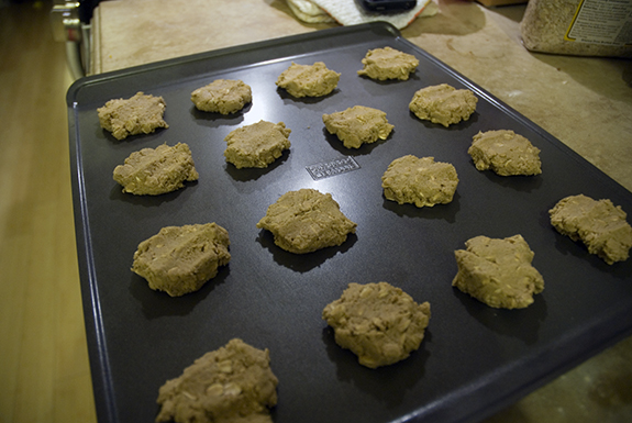And so. These oatmeal cookies are sugarless. They are instead sweetened with honey, molasses and agave nectar. They are also wheat and gluten-free. (I think!)