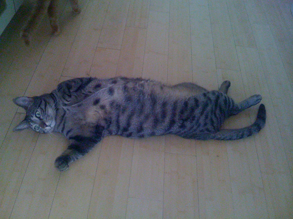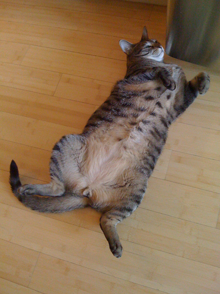 i love having a cat that sleeps like a dog. it makes me laugh. and i love knowing that yours does it also :0