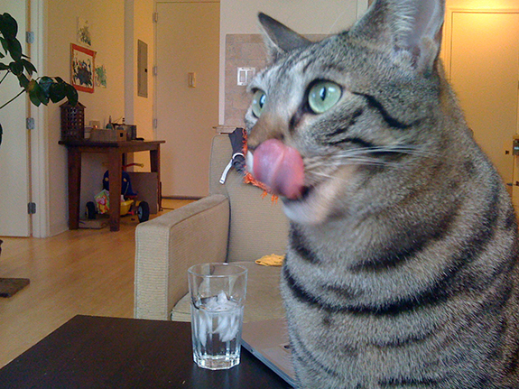 Someone ate Emory’s broccoli when Emory and mama were off finishing the rest of his meal. And someone just could NOT stop licking his chops. Totally guilty.