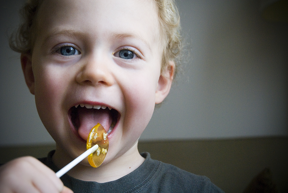 So: here is a picture of my kid eating one of my lollipops.