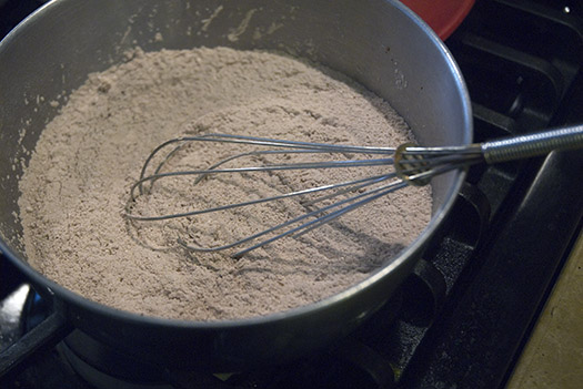 Lastly, if you don’t have time to sift the flour mixture together, which is what you’re supposed to do, you can easily use a wire whisk and just give it a good stir, breaking up the big chunks.