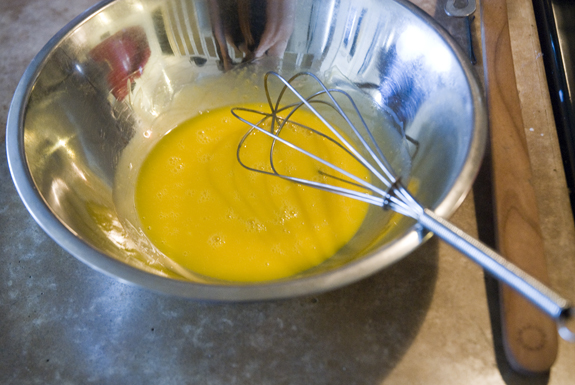 Separate out your yolks. Whisk them together. (I saved my whites to use for egg white omelets and/or egg-white based desserts like meringue.)