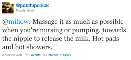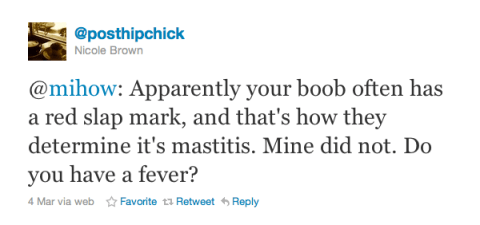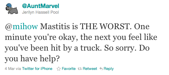 Several people wrote back with mastitis stories and as I read through them, I became more and more sure that’s what I had.