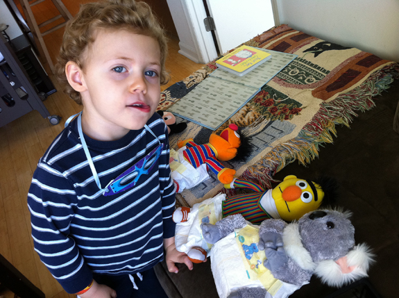 But that’s not what this post is about. This post is about Emory and how he started burping, cuddling, feeding and diapering his babies with the leftover newborn diapers.