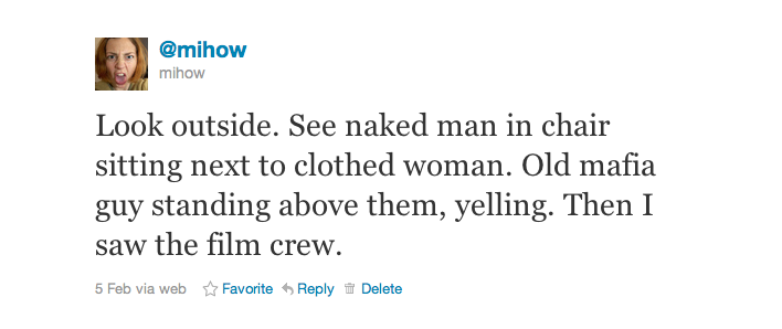 There was the naked couple who ran through the first snowfall of 2009. They moved out two weeks after we moved in and I still kind of miss them.