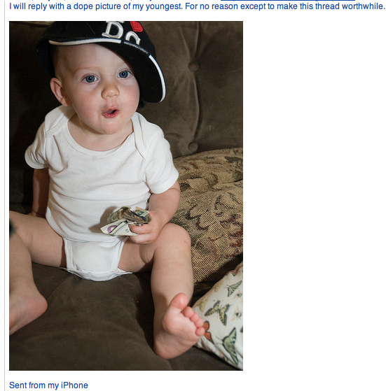 Not quite. In typical, smart ass Toby Joe fashion, he replied with a recent picture I took of Elliot: