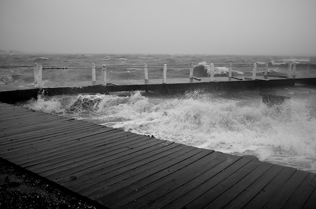 I love storms. My mom feels the same way. So at 11:15 AM, 45 minutes before a mandatory curfew, we got in the car and drove to the bay.