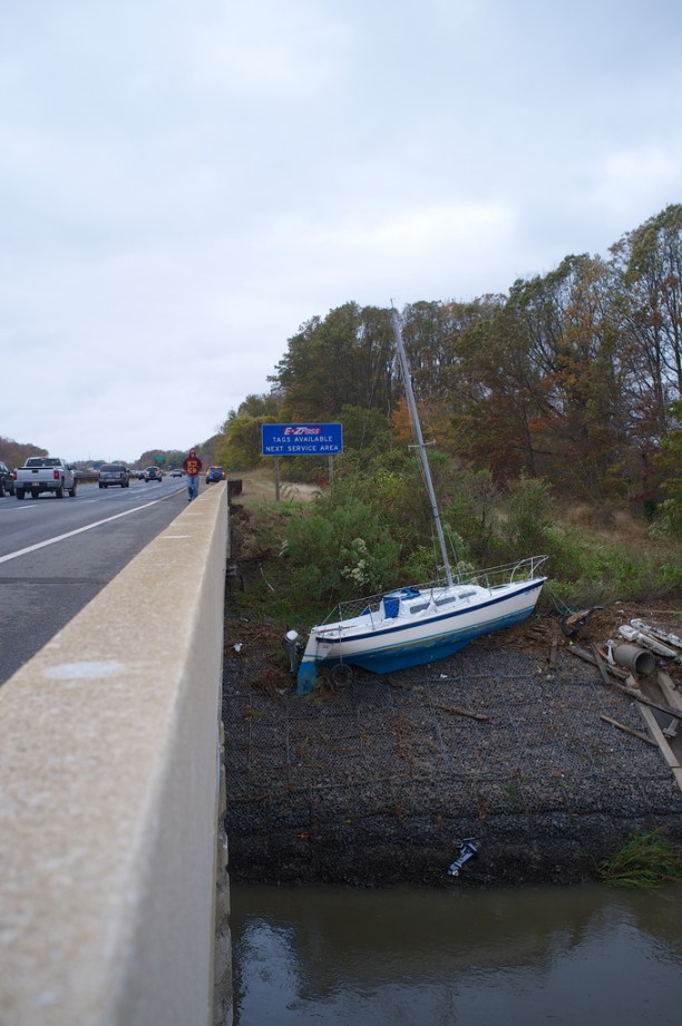 This is Morgan Marina right off the Garden State Parkway. I can’t do this sight justice. The boats are usually on the marina. Now they are on top of one another. It looks like a boat junkyard. This is normally a serene marina filled with sailboats. It was crazy.