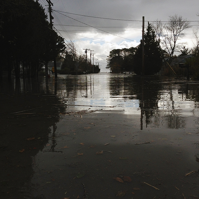 This was taken the following day, several blocks from Barnegat Bay. We are looking down the street toward where the image above was taken. Obviously, we were unable to make to the bay again. Many, many houses were underwater or completely destroyed. This is where my grandmother’s house is, however she passed away in 2001. My father grew up here.
