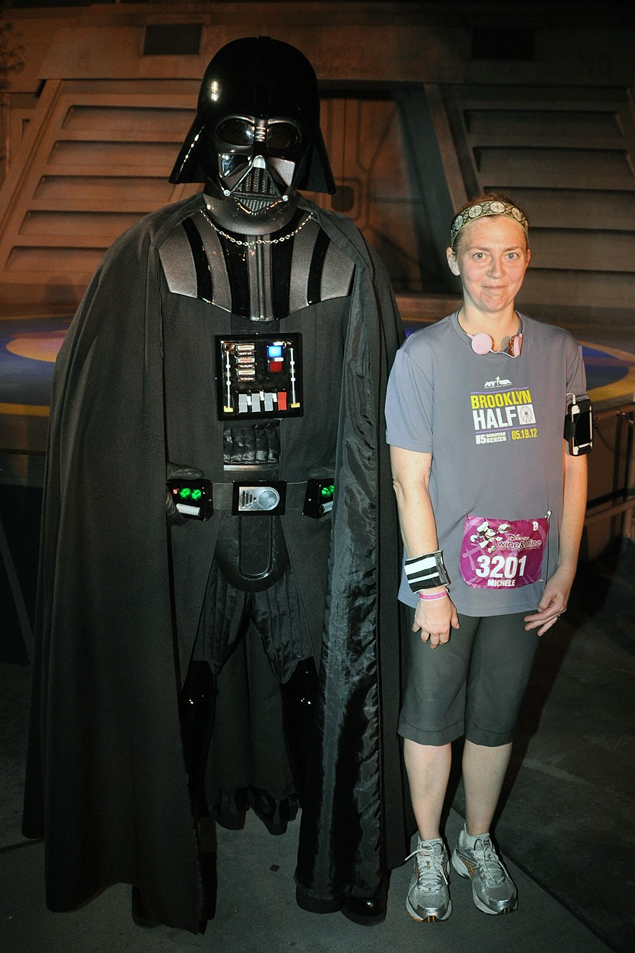 For starters, this was a late night run (It ended after midnight. The party went until 4AM) so I am blaming my inability to reach my goal on the fact that I am a morning person. (Ha ha! Yeah, right.) Also, the month leading up to this race was a rough one and therefore my training schedule was all mucked up. (COME ON! YOU GOTTA BELIEVE ME!) Lastly, I ran into Darth Vader and I had to stop and get a picture with him because, I mean, how many times do you run into Darth Vader while out running? Not that often.