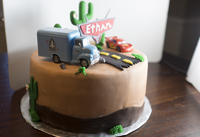 Anyway, my most recent cake job was created for a woman who has two little boys (ages 3 and 4) who were having a joint birthday party. She wanted two cakes that worked together, but worked separately as well. She wanted Moon Mater on one and Lightning McQueen on the other. Here is what I came up with in three short, stressful (but exciting!) days.
